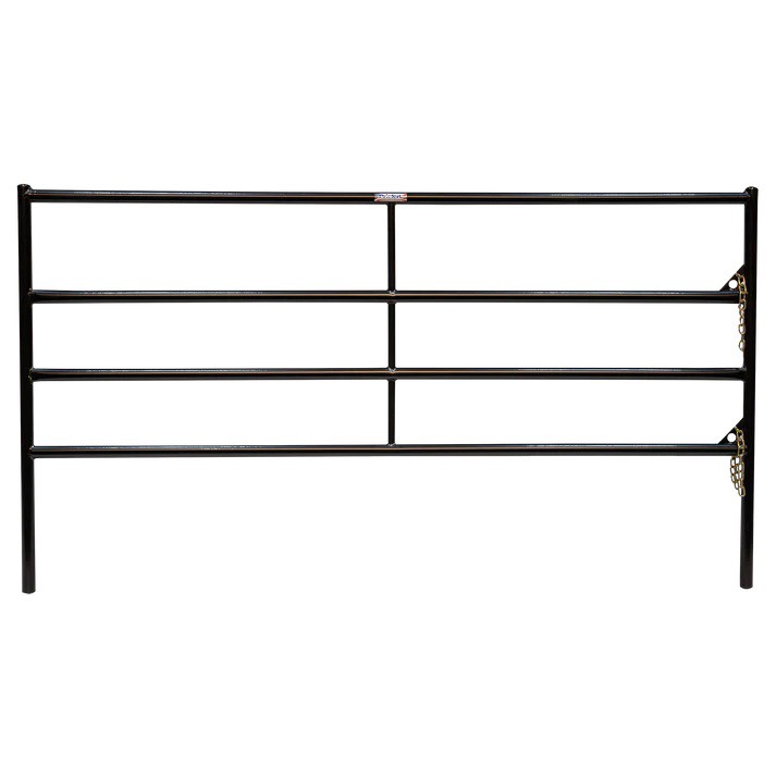 Trailer Panel is ideal for temporary housing of horses while on the road at events. This four-rail panel stands 50.5 inches tall and is great for use with horses that are cooperative and accept confinement. At just under 8’ long, these panels are designed to fit into the slant of a horse trailer or in an 8’ hay rack for easy transport. These panels feature a single piece vertical stay fitted through drilled rails to provide additional strength and structural integrity. The straight legs are balled on each end, sealing the tubing completely from the elements. This lightweight panel is easy to move around, and chain connectors allow for quick, tight connections between panels and gates that help eliminate dangerous foot traps. Chain connectors also offer increased versatility for connecting to panels over uneven ground and allow for easy connection to existing structures. The Architectural Grade Powder Coat Finish helps the product to resist rust, scratches, and fading to add years of life to your investment.